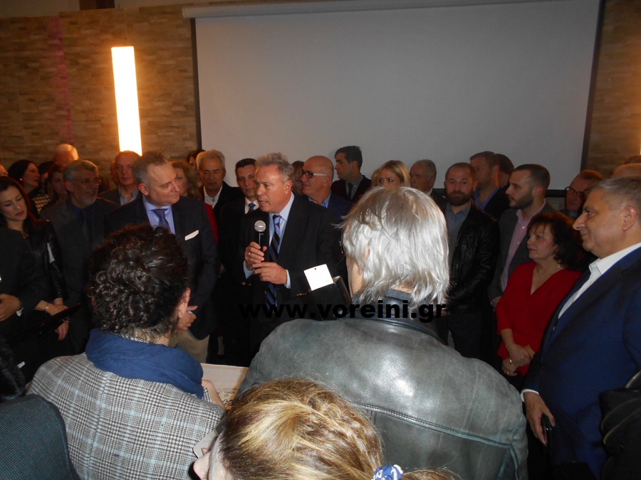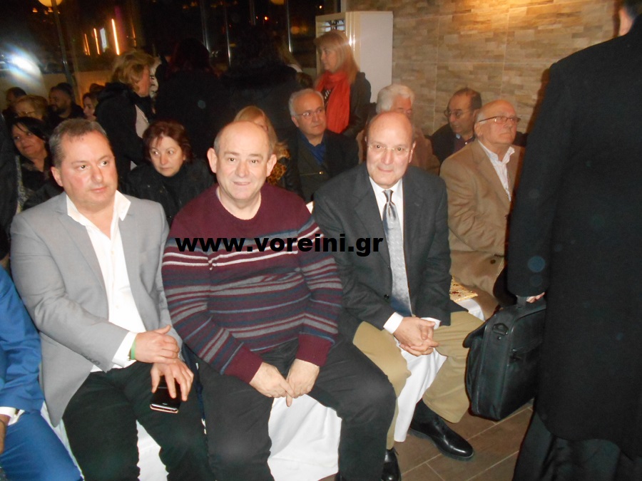 Στην κατάμεστη από κόσμο αίθουσα το παρόν έδωσαν μεταξύ άλλων ο Πρόεδρος των Κεντρώων Βασίλης Λεβέντης και ο οποίος χάρισε το κομμάτι του στην Μακεδονία που όπως είπε την πούλησαν όλοι.