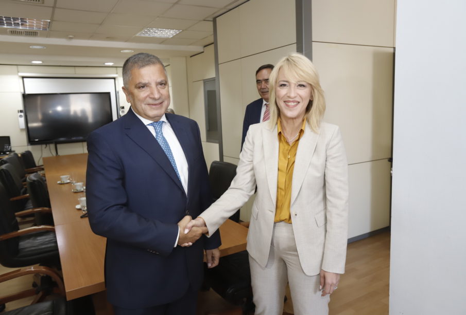 Η απερχόμενη Περιφερειάρχης Ρ. Δούρου υποδέχθηκε το νέο Περιφερειάρχη Γ. Πατούλη στο γραφείο του 7ου ορόφου όπου είχαν ολιγόλεπτη συνάντηση.