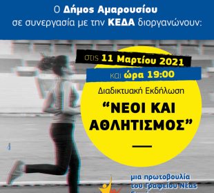 Ο Δήμος Αμαρουσίου και η Κοινωφελής Επιχείρηση του Δήμου Αμαρουσίου (ΚΕΔΑ) διοργανώνουν την Πέμπτη 11 Μαρτίου 2021 & ώρα 19.00 τη Διαδικτυακή Εκδήλωση με θέμα «Νέοι ...Διαδικτυακή Εκδήλωση Ελλάδα: 40 χρόνια Ευρωπαία Παρασκευή 12 Μαρτίου, 12:30-20:00