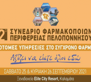 Ο Φαρμακευτικός Σύλλογος Μεσσηνίας, με συνδιοργάνωση των Φαρμακευτικών Συλλόγων Αργολίδας, Αρκαδίας, Κορινθίας και Λακωνίας, διοργανώνουν το 2ο Συνέδριο Φαρμακοποιών Περιφέρειας Πελοποννήσου, που ...Όλη η Ελλάδα ένας Πολιτισμός_Πρόγραμμα 26 Ιουλίου-1 Αυγούστου