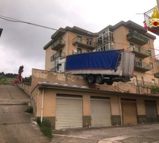 Νταλίκα σε ισορροπία στην… σκεπή κτιρίου!