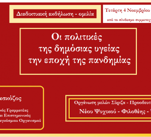 Από σήμερα το πρωί ξεκίνησε μια δύσκολη περίοδος για όλους μας. Όλοι μαζί θα το ξεπεράσουμε κι αυτό. O Δήμος μας, καθ’όλη ...Διαδικτυακή εκδήλωση της ΟΜ Νέου Ψυχικού-Φιλοθέης- Ψυχικού για την πανδημία