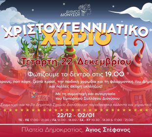 Η σχετική ανακοίνωση: Την Τετάρτη 22 Δεκεμβρίου στις 19:00 μ.μ. φωτίζουμε το Χριστουγεννιάτικο Δέντρο στο Δήμο Διονύσου, στην Πλατεία Δημοκρατίας στον Άγιο ...Ανακοίνωση του Δήμου Διονύσου για τις προσαυξήσεις στους λογαριασμούς ύδρευσης