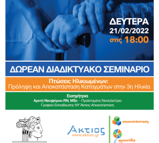 Το Τμήμα Κοινωνικής Προστασίας, Παιδείας, Πολιτισμού και Αθλητισμού του Δήμου Διονύσου, το Κέντρο Αποκατάστασης Άκτιος Αποκατάσταση & οι Μονάδες Φροντίδας Ηλικιωμένων Άκτιος σας προσκαλούν σε Webinar ...Απογραφή στο Δήμο Διονύσου: Ολοκληρώνεται η 3η φάση τη Δευτέρα 21/2/2022