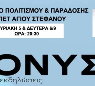 Το Κέντρο Πολιτισμού «Χορεύρεσις» και ο Δήμος Διονύσου σας προσκαλούν σε ένα Διήμερο Πολιτισμού και Παράδοσης, στο πλαίσιο των ΔΙΟΝΥΣΙΩΝ 2021. — Κυριακή 5 Σεπτεμβρίου 2021 και ώρα 20:30 στο ΤΥΠΕΤ Αγίου Στεφάνου, μουσικοχορευτική παράσταση ...Αναστολή εκδηλώσεων ΔΙΟΝΥΣΙΩΝ λόγω τριήμερου εθνικού πένθους για την απώλεια του Μίκη Θεοδωράκη