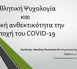 Το ξέσπασμα της πανδημίας του COVID-19 είχε ως αποτέλεσμα να επηρεάσει την ψυχολογία των αθλητών και την αθλητική τους επίδοση. Το τμήμα ...Απομακρύνεται το περίπτερο από το πεζοδρόμιο της οδού Δημοκρατίας και Ηρώου στα Μελίσσια