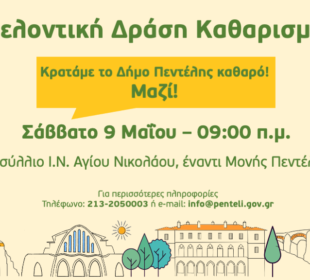 Η σχετική ανακοίνωση: Ο Δήμος Πεντέλης συνεχίζει την προετοιμασία των σχολικών κτηρίων για το άνοιγμά τους μετά την δίμηνη περίπου διακοπή της ...Εθελοντική Δράση Καθαρισμού από το Δήμο Πεντέλης – Σάββατο 9/5 – 9 π.μ.