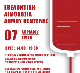 «Δώστε αίμα, σώστε Ζωές!» Με αυτό το σύνθημα ο Δήμος Πεντέλης διοργάνωσε σήμερα ημέρα Εθελοντικής Αιμοδοσίας, για να συμβάλει στην αντιμετώπιση του ...