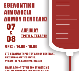 Συγκινητική η ανταπόκριση των πολιτών Ο Δήμος Πεντέλης πραγματοποιεί και 3η Αιμοδοσία για να μπορέσουν να συμμετάσχουν ακόμη περισσότεροι πολίτες Ο Δήμος ...Σε μια νέα ψηφιακή εποχή περνά ο Δήμος Πεντέλης
