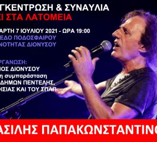 Έχοντας υπόψη τις προβλέψεις για την επικράτηση πολύ υψηλών θερμοκρασιών σας γνωρίζουμε ότι στο Δήμο μας θα λειτουργήσουν, από την Τετάρτη 30 ...Συναυλία διαμαρτυρίας με το Βασίλη Παπακωνσταντίνου, την Τετάρτη 7/7 στον Διόνυσο