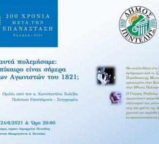 H σχετική ανακοίνωση του Δήμου: Ξεκινούν οι Πολιτιστικές Εκδηλώσεις του Δήμου Πεντέλης, που είναι αφιερωμένες στον εορτασμό των 200 χρόνων (1821-2021) από ...Προσφυγή στο ΣτΕ για έργα χωρίς άδεια στο ΣΜΑ Μελισσίων