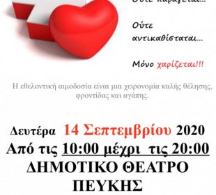 Για τη Δευτέρα 14 Σεπτεμβρίου είναι προγραμματισμένη η Εθελοντική Αιμοδοσία που διοργανώνει ο Δήμος Λυκόβρυσης- Πεύκης. Θα πραγματοποιηθεί στην Αίθουσα «Μανόλης Αναγνωστάκης» ...“Ένα Αρχιπέλαγος Χωρίς Πλαστικά”στο Ανοιχτό Θέατρο Κολυμβητηρίου Λυκόβρυσης 14/9