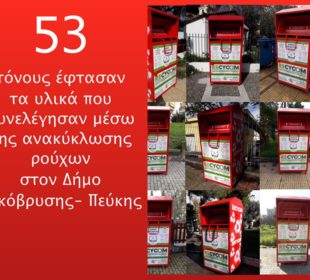 Τους 53 τόνους έχουν φτάσει τα υλικά που συνελέγησαν στον Δήμο Λυκόβρυσης- Πεύκης από τον Φεβρουάριο του 2019 όταν ξεκίνησε το πρόγραμμα ...Ψήφισμα κατά της μεταφοράς του καζίνο της Πάρνηθας στο Μαρούσι από την ΠΕΔΑ