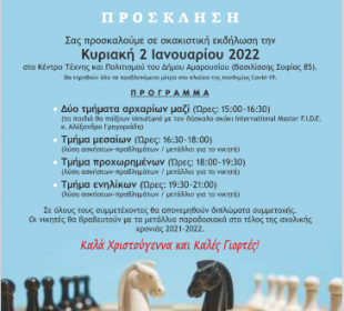 Σκακιστική εκδήλωση με τη συμμετοχή των σπουδαστών στην Ακαδημία Σκάκι Αμαρουσίου της ΚΕΔΑ Κυριακή 2 Ιανουαρίου 2022, Κέντρο Τέχνης και Πολιτισμού Δήμου ...Δήμος Κηφισιάς: Διασύνδεση με την Τοπική Αγορά Εργασίας