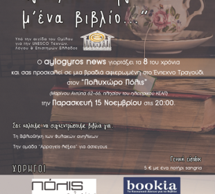 Ο aylogyros news, με αφορμή τα «8 χρόνια» λειτουργίας του, διοργανώνει σε συνεργασία με το «ΠΟΛΙΣ» ΠΟΛΥΧΩΡΟΣ, μια βραδιά αφιερωμένη στο ...Νέες κυκλοφορίες από τις Εκδόσεις ΨΥΧΟΓΙΟΣ