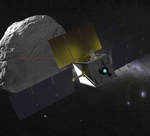 Μια άποψη της μικρότερης μελλοντικής αποστολής αστεροειδών της ESA που χαρτογραφεί το σώμα-στόχο της με λέιζερ. Το «Miniaturized Asteroid Remote Geophysical Observer» ...Ένας γαλαξίας, δύο αστεροειδείς