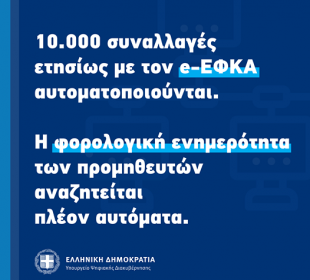 Από ένα σημαντικό γραφειοκρατικό βάρος απαλλάσσονται πολίτες και Δημόσια Διοίκηση, καθώς από σήμερα ο e-ΕΦΚΑ ξεκινά να αξιοποιεί την διαλειτουργικότητα για την ...Μητσοτάκης: “Η Ελλάδα δεν πρόκειται και δεν πρέπει ποτέ να γίνει ένας επενδυτικός προορισμός χαμηλού ...