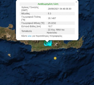 Σεισμική δόνηση μεγέθους 5.3 βαθμών της κλίμακας Ρίχτερ σημειώθηκε στις 07:48 το πρωί της Τρίτης 28-09-2021. Το επίκεντρο της δόνησης είναι 22 ...Απλοποιείται η διαδικασία για κλαδεύσεις και απομακρύνσεις δέντρων σε ιδιωτικές εκτάσεις, εκτός ορίων οικισμού