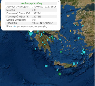 Σεισμική δόνηση μεγέθους 5.2 βαθμών της κλίμακας Ρίχτερ σημειώθηκε στις 23:28 το βράδυ της Τρίτης 13-04-2021. Το επίκεντρο της δόνησης είναι 12 ...Σεισμός 4.3 Ρίχτερ κούνησε την Ιθάκη