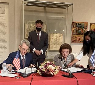 Σήμερα, ο Πρέσβης των ΗΠΑ στην Ελλάδα Geoffrey R. Pyatt και η Ελληνίδα Υπουργός Πολιτισμού και Αθλητισμού Λίνα Μενδώνη υπέγραψαν ένα διμερές Μνημόνιο Κατανόησης με ...Άφιξη στην Ελλάδα, μέσω Τιφλίδας, 7 Αφγανών γυναικών Βουλευτών και των μελών των οικογενειών τους