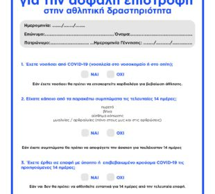 Οδηγίες του ΕΟΔΥ για την επαναλειτουργία των γυμναστηρίων: Α. ΧΩΡΟΣ ΓΥΜΝΑΣΤΗΡΙΟΥ ανάρτηση, στην είσοδο και σε εμφανή σημεία εσωτερικά του γυμναστηρίου, οδηγιών ...Σύμφωνο συνεργασίας για την επαναλειτουργία των κλειστών γυμναστηρίων «Σπίτι του Κλειστού Στίβου και του Βόλεϊ» ...