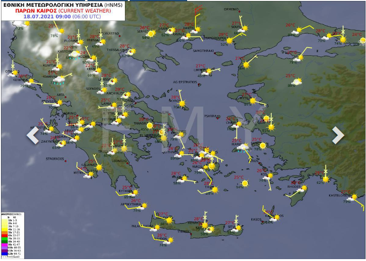 Θερμοκρασία: Από 23 έως 32 και στην Κρήτη έως 34 βαθμούς Κελσίου.
