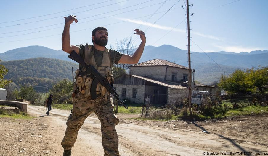 Τις φιλοδοξίες της Τουρκίας και τις πιθανές αντιδράσεις της Μόσχας στο Ναγκόρνο Καραμπάχ διερευνά η Frankfurter Allgemeine Zeitung (FAZ). Όπως επισημαίνει ο αρθρογράφος «ο (πρόεδρος της Ρωσίας Βλάντιμιρ) Πούτιν έχει καθορίσει ως ‘κόκκινη ζώνη’ μόνο μία πιθανή επίθεση εντός της αρμενικής επικράτειας, στην οποία από πλευράς διεθνούς δικαίου δεν ανήκει το μέτωπο των εχθροπραξιών. Στις τέσσερις εβδομάδες του πολέμου η Μόσχα απέφυγε να ασκήσει απευθείας κριτική στην Τουρκία και τους μισθοφόρους. Το άφησε αυτό στον Γάλλο πρόεδρο Εμανουέλ Μακρόν, εταίρο στην ηγεσία της ‘Ομάδας του Μινσκ’ που έχει συστήσει ο ΟΑΣΕ (…) Στις αρχές Οκτωβρίου ωστόσο ο Σεργκέι Ναρίσκιν, επικεφαλής των ρωσικών μυστικών υπηρεσιών που δραστηριοποιούνται στο εξωτερικό, προειδοποιούσε ότι ο Νότιος Καύκασος μπορεί να εξελιχθεί σε ένα νέο πεδίο δράσης για διεθνείς τρομοκρατικές οργανώσεις…»