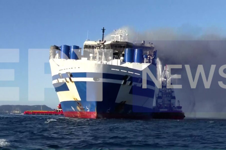 «Euroferry Olympia»: Ρυμουλκείται σε ασφαλές μέρος – Στους 500°-600° Κελσίου η θερμοκρασία στο πλοίο