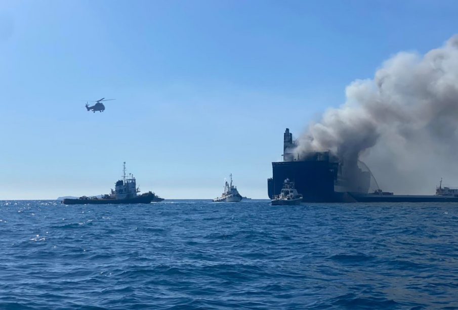 Όπως μετέδωσε η ανταποκρίτρια της ΕΡΤ Κέρκυρας Μαρία Παγκράτη η φωτιά ξεκίνησε από το τρίτο κατάστρωμα και αυτή τη στιγμή το πλοίο καίγεται από άκρη σε άκρη. Μεγάλη είναι ξη κινητοποίηση των ελληνικών αρχών είναι μεγάλη. Πλοίο του Πολεμικού Ναυτικού έχει ξεκινήσει για το σημείο που βρίσκεται το πλοίο, αντιρρυπαντικό σκάφος από την Πάτρα, το ρυμουλκό «Δίας» από το λιμάνι της Κέρκυρας, τέσσερα σκάφη του Λιμενικού, το «Γρηγόρης» με τρία οχήματα της πυροσβεστικής και τα φέριμποτ «Ευδοκία» και «Κέρκυρα Express» για να περισυλλέξει τους ανθρώπους που βρίσκονται στις λέμβους. Επίσης υπάρχουν και παραπλέοντα πλοία καθώς και της ιταλικής ακτοφυλακής.