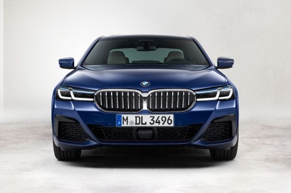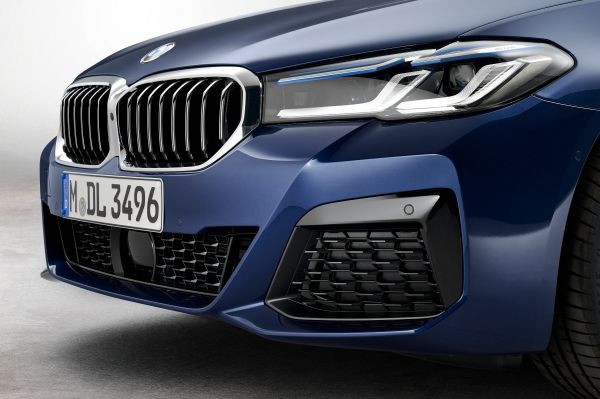 Η κλασική μάσκα ‘νεφρών’ αποκτά έξτρα πλάτος και ύψος, κατεβαίνει χαμηλότερα προς την εμπρός ποδιά και φέρει ένα μονοκόμματο πλαίσιο. Το πιο λεπτό περίγραμμα των προβολέων προσδίδει μία μοντέρνα πινελιά στη γνώριμη εμφάνιση των μοντέλων BMW. Δύο πηγές φώτων ημέρας σχήματος U ή L προαιρετικά διατεταγμένα το ένα δίπλα στο άλλο δημιουργούν μια ακριβή και σύγχρονη ‘φωτεινή υπογραφή’. Νέοι προβολείς full-LED με προσαρμοζόμενη λειτουργία φωτισμού στροφής (adaptive cornering function), αντιθαμβωτική μεγάλη σκάλα φώτων BMW Selective Beam τεχνολογίας matrix, και High-beam Assistant προσφέρονται προαιρετικά. Σύστημα φωτισμού BMW Laser διατίθεται προαιρετικά για όλες τις εκδόσεις της BMW Σειράς 5. Και στις δύο προαιρετικές εκδόσεις προβολέων, τα εξωτερικά φώτα ημέρας λειτουργούν επίσης και ως δείκτες πορείας (φλας). Το μαύρο περίγραμμα και ένα νέο γραφικό σχήματος L χαρίζουν στα πίσω φώτα της νέας BMW Σειράς 5 πρόσθετη γοητεία. Τα πίσω φώτα και τα φώτα φρένων είναι ενσωματωμένα σε μια κοινή μονάδα με εντυπωσιακούς τρισδιάστατους φακούς. Ανεξάρτητα από την έκδοση εξοπλισμού και την επιλογή κινητήρα, όλα τα μοντέλα της νέας BMW Σειράς 5 διατίθενται με τραπεζοειδείς απολήξεις εξαγωγής.
