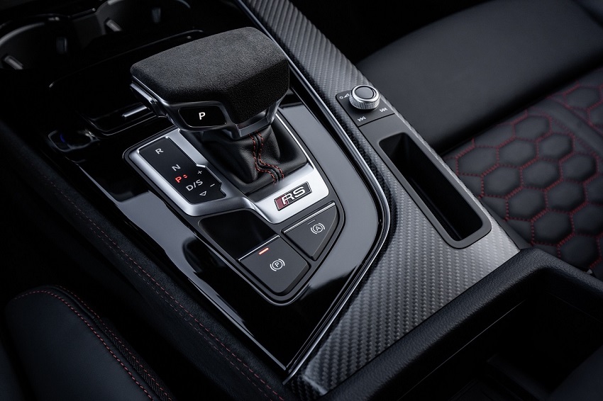Ένα πολύ γρήγορο κιβώτιο ταχυτήτων 8-σχέσεων tiptronic μεταδίδει την ισχύ στη μόνιμη τετρακίνηση quattro. Ο οδηγός μπορεί να επιλέξει ανάμεσα στις λειτουργίες D και S ή να ελέγξει την αλλαγή ταχυτήτων μέσω των νέων μεγαλύτερων paddles αλουμινίου. Η τετρακίνηση quattro παρέχει τα δύο μοντέλα RS * με την απαιτούμενη πρόσφυση, δυναμισμό και σταθερότητα, ανεξάρτητα από καιρικές συνθήκες. Ο χειρισμός γίνεται ακόμα πιο σπορ με το προαιρετικό σπορ διαφορικό στον πίσω άξονα, το οποίο κατανέμει ενεργά τη ροπή μεταξύ των τροχών.