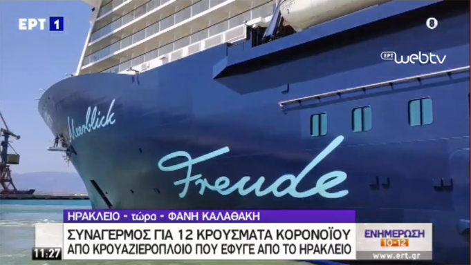 Συναγερμός έχει σημάνει για 12 κρούσματα σε μέλη πληρώματος σε κρουαζιερόπλοιο εν πλω. Πρόκειται για κρουαζιερόπλοιο της TUI, το οποίο έφυγε από το Ηράκλειο της Κρήτης και βρισκόταν στη Μήλο. Αποφασίστηκε να καταπλεύσει στο λιμάνι του Πειραιά.
