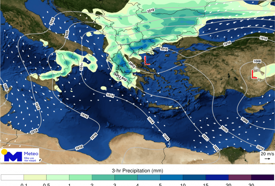 Κύρια χαρακτηριστικά της μεταβολής του καιρού θα είναι οι βροχοπτώσεις σχεδόν στο σύνολο της χώρας, οι καταιγίδες κυρίως στη Δυτική Ελλάδα και στο Αιγαίο και οι χιονοπτώσεις στα ηπειρωτικά ορεινά που τη νύχτα της Τετάρτης προς Πέμπτη θα επηρεάσουν περιοχές της Βόρειας Ελλάδας με χαμηλότερο υψόμετρο. Παράλληλα, από τις βραδινές ώρες της Τετάρτης πολύ ενισχυμένοι άνεμοι βορείων διευθύνσεων θα επικρατήσουν στα πελάγη και η θερμοκρασία θα σημειώσει αισθητή πτώση, με τις μέγιστες τιμές την Πέμπτη να υποχωρούν κατά 5-8 βαθμούς.