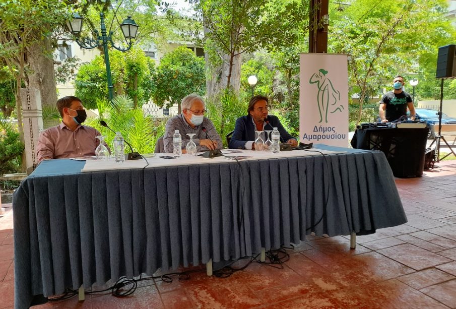 Συνέντευξη τύπου για την παρουσίαση του Καλοκαιρινού Πολιτιστικού Προγράμματος της Διεύθυνσης Αθλητισμού & Πολιτισμού του Δήμου Αμαρουσίου δόθηκε στον κήπο της Βορέειου Βιβλιοθήκης την Πέμπτη 17 Ιουνίου 2021, από τον Δήμαρχο Αμαρουσίου Θεόδωρο Αμπατζόγλου και τον Αντιδήμαρχο Αθλητισμού & Πολιτισμού Γιάννη Νικολαράκο.