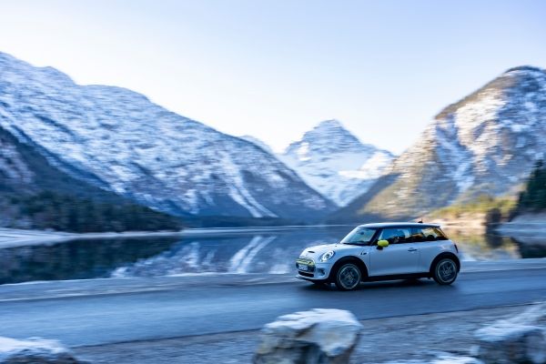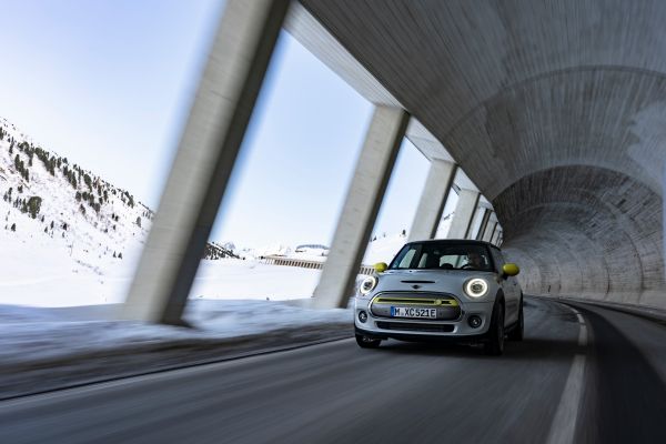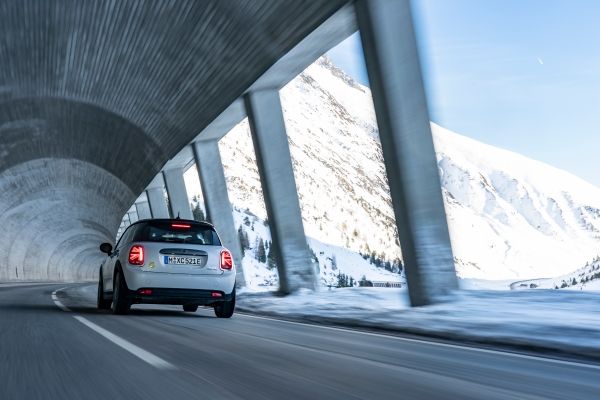Η αυτονομία του MINI Cooper SE στον επίσημο κύκλο δοκιμών κυμαίνεται μεταξύ 235 και 270 km – οι τιμές αυτές που μπορούν να επιτευχθούν με την προϋπόθεση ότι ολόκληρη η ισχύς του κινητήρα 135 kW/184 hp δεν χρησιμοποιείται συνεχώς. Η διαδρομή από τα νότια του Μονάχου μέχρι το χιονοδρομικό, οδηγεί αρχικά στον αυτοκινητόδρομο 95. Σύντομα, οι πρόποδες των Άλπεων αρχίζουν να γίνονται ορατές στη δεξιά και αριστερή πλευρά του δρόμου. Ταξιδεύοντας με ενεργό το GREEN mode, η απόκριση του γκαζιού είναι ρυθμισμένη με γνώμονα την απόδοση. Το MINI Cooper SE πλησιάζει στο όρος Zugspitze. Από το Garmisch-Partenkirchen, η πορεία συνεχίζεται με νοτιοανατολική κατεύθυνση προς το σύνορο μεταξύ Γερμανίας και Αυστρίας, στην παραμεθόριο πόλη του Mittenwald.