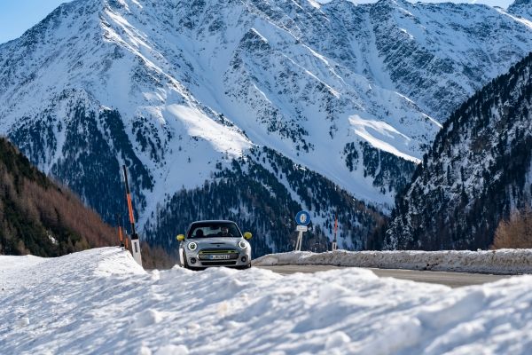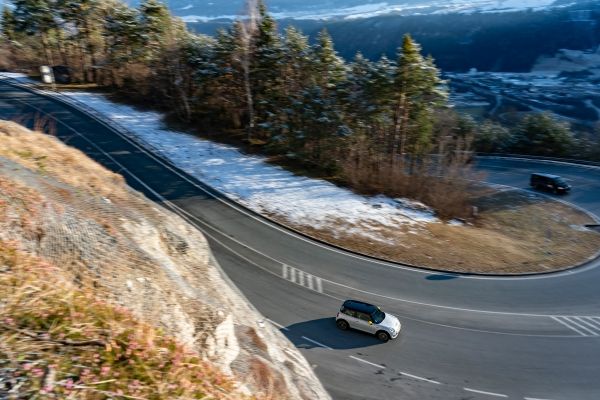 Στους επαρχιακούς δρόμους της Αυστρίας, το MINI Cooper SE επιτέλους αρχίζει να αναζωογονείται με γνήσιο, βουνίσιο αεράκι. Σε υψόμετρο 1.200 m φτάνει στο Τυρολέζικο χωριό του Ζέεφελντ (Seefeld). Το μέρος είναι ιδανικό για cross-country σκι, αλλά και το MINI Cooper SE κινείται με άνεση στους δρόμους που οδηγούν στο διάσελο. Στροφές φουρκέτες και χιόνι προσφέρουν άφθονες ευκαιρίες για να δοκιμαστεί το ταλέντο του στη διασκεδαστική οδήγηση. Το σύστημα ελέγχου ευστάθειας με ενεργοποιητή περιορισμού ολίσθησης τροχών επιτρέπουν ταχεία και ακριβή απόκριση στις μεταβαλλόμενες οδηγικές συνθήκες και αυξάνουν την ευελιξία που αποτελεί σήμα κατατεθέν της μάρκας.