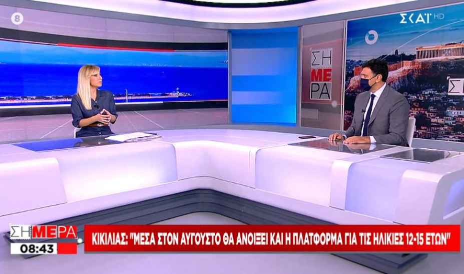 Το άνοιγμα της πλατφόρμας για τον εμβολιασμό των παιδιών ηλικίας 12-15 ετών μέσα στον Αύγουστο προανήγγειλε ο υπουργός Υγείας, Βασίλης Κικίλιας, μιλώντας στον ΣΚΑΪ και την εκπομπή «Σήμερα».