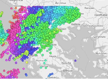 9900 κεραυνοί καταγράφηκαν στη Βορειοδυτική Ελλάδα από το σύστημα «ΖΕΥΣ» του Εθνικού Αστεροσκοπείου Αθηνών έως το απόγευμα της Τετάρτης 5 Αυγούστου, όπως φαίνεται και στο χάρτη που ακολουθεί. Βροχές και καταιγίδες σημειώθηκαν κυρίως στο Ιόνιο, στη Μακεδονία, στην Ήπειρο και στη Θεσσαλία. Αξίζει να σημειωθεί ότι κατά την πρώτη ημέρα της «Θάλειας» στον μετεωρολογικό σταθμό της Κέρκυρας καταγράφηκαν 70.8 χιλιοστά βροχής, με τα 69 από αυτά σε περίπου 90 λεπτά.