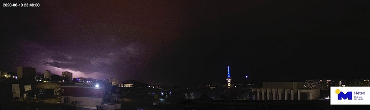 Μια όμορφη εικόνα κατέγραψαν οι μετεωρολογικές κάμερες του σταθμού μας στη Διεθνή Έκθεση Θεσσαλονίκης. Σε αυτή φαίνεται η λάμψη ενός κεραυνού μέσα στα νέφη στα ανατολικά-βορειοανατολικά της πόλης.