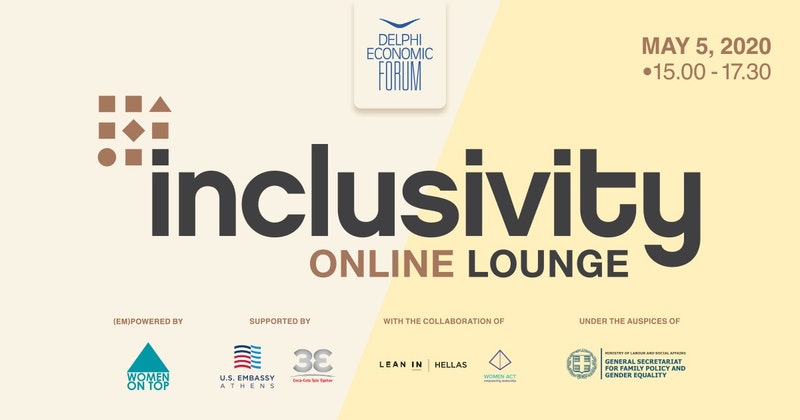 Την Τρίτη 5 Μαΐου, από τις 15:00 έως τις 17:30 η διαδικτυακή πλατφόρμα του Delphi Economic Forum θα φιλοξενήσει το Inclusivity Lounge online που διοργανώνει το Women On Top, με την υποστήριξη της Πρεσβείας των Η.Π.Α. και της Coca Cola Tria Epsilon, και με τη συνεργασία των Women Act και Lean In Hellas. Το Inclusivity Lounge online διοργανώνεται υπό την αιγίδα της Γενικής Γραμματείας Οικογενειακής Πολιτικής και Ισότητας των Φύλων.