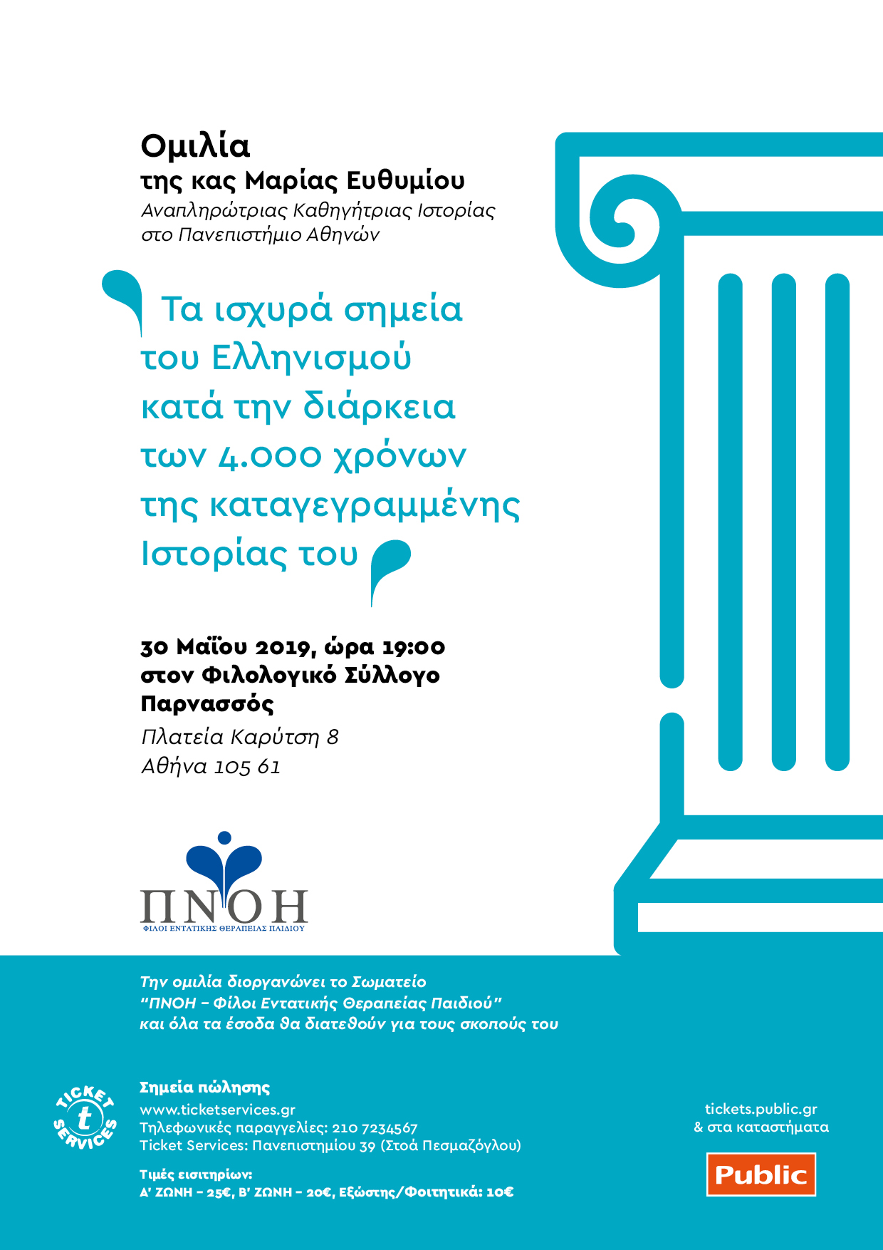 Η Αναπληρώτρια Καθηγήτρια Ιστορίας στο ΕΚΠΑ θα παραθέσει ομιλία για τους σκοπούς του σωματείου ΠΝΟΗ- Φίλοι Εντατικής Θεραπείας Παιδιού, μέλος της Ένωσης «Μαζί για το Παιδί»