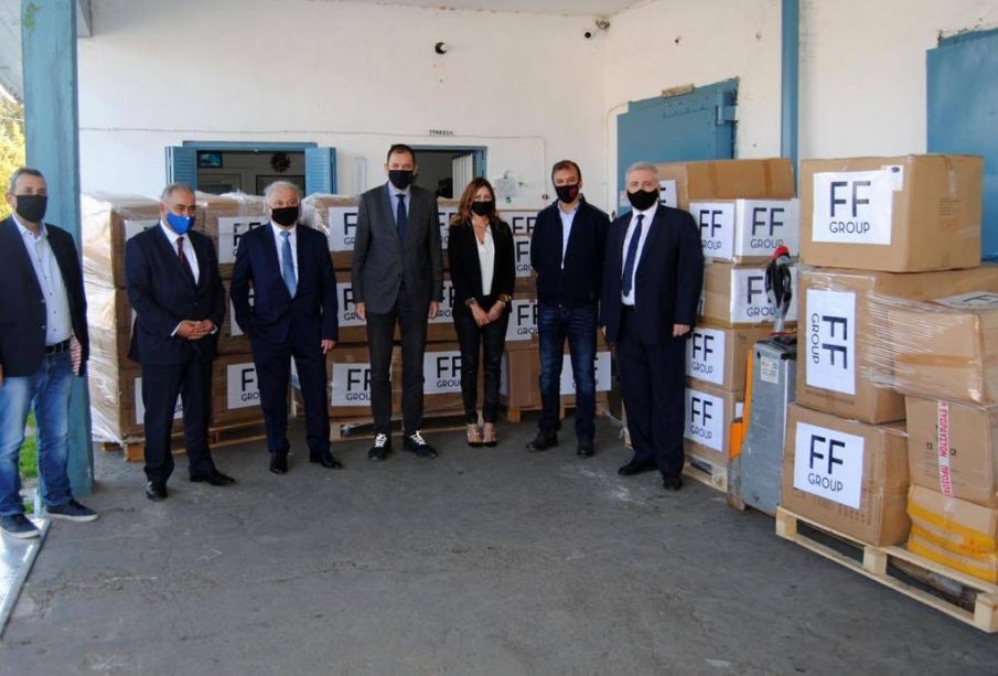Παρόντες στην παράδοση των περίπου 1.000 τεμαχίων, ήταν ο Πρόεδρος και Διευθύνων Σύμβουλος του FF Group, κ. Γεώργιος Σάμιος με το επιτελείο του, ο εντεταλμένος Σύμβουλος της Περιφέρειας Αττικής κ. Σταύρος Βοϊδονικόλας, ο Αντιπεριφερειάρχης Καρδίτσας κ. Κωστής Νούσιος και ο Πρόεδρος του Επαγγελματικού Επιμελητηρίου Αθηνών κ. Γιάννης Χατζηθεοδοσίου.