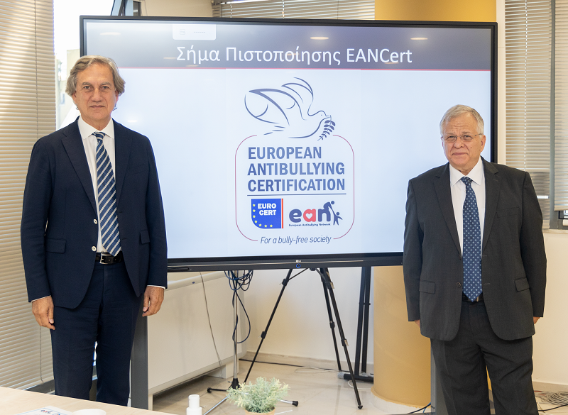 Με ιδιαίτερη επιτυχία πραγματοποιήθηκε η διαδικτυακή παρουσίαση του Προτύπου Πιστοποίησης κατά του Εκφοβισμού που διοργάνωσαν σε πρώτη πανευρωπαϊκή παρουσίαση και υπό την αιγίδα του Υπουργείου Παιδείας & Θρησκευμάτων οι συνεργαζόμενοι φορείς «Ευρωπαϊκό Δίκτυο κατά του Εκφοβισμού» (Εuropean Antibullying Network – EAN), «Το Χαμόγελο του Παιδιού» και η «EUROCERT» σε διαδικτυακή εκδήλωση την Τρίτη 26 Οκτωβρίου και ώρα 12.00μμ.