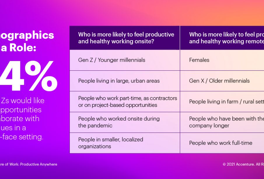Καθώς οι εταιρείες σε όλον τον κόσμο σχεδιάζουν την επιστροφή των εργαζομένων τους στο χώρο εργασίας, η πρόσφατη μελέτη της Accenture σημειώνει ότι 83% των ερωτηθέντων προτιμά ένα υβριδικό μοντέλο εργασίας ─ όπου οι εργαζόμενοι έχουν τη δυνατότητα να εργάζονται εξ αποστάσεως μεταξύ 25% και 75% του χρόνου τους.