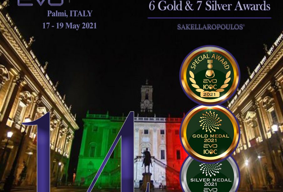 Μια πρωτοφανής διάκριση για Έλληνα ελαιοπαραγωγό Single Estate πολύ υψηλού κύρους, με την πρώτη θέση και 14 βραβεύσεις, σημειώθηκε στην Ιταλία, για τους βιολογικούς ελαιώνες Σακελλαρόπουλου, στον έγκριτο διεθνή διαγωνισμό ελαιολάδων EVO International Olive Oil Competition 2021.