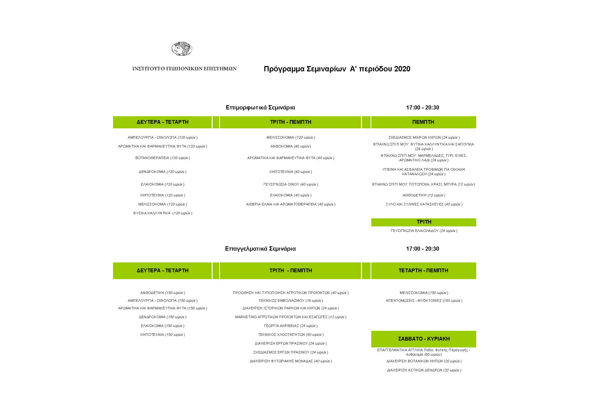 Το Ινστιτούτο Γεωπονικών Επιστημών σας ενημερώνει ότι τη Τετάρτη 5 Φεβρουαρίου 2020 ξεκινούν οι εγγραφές για τα καινούρια εκπαιδευτικά προγράμματα όπως αυτά αναφέρονται στα επισυναπτόμενα αρχεία