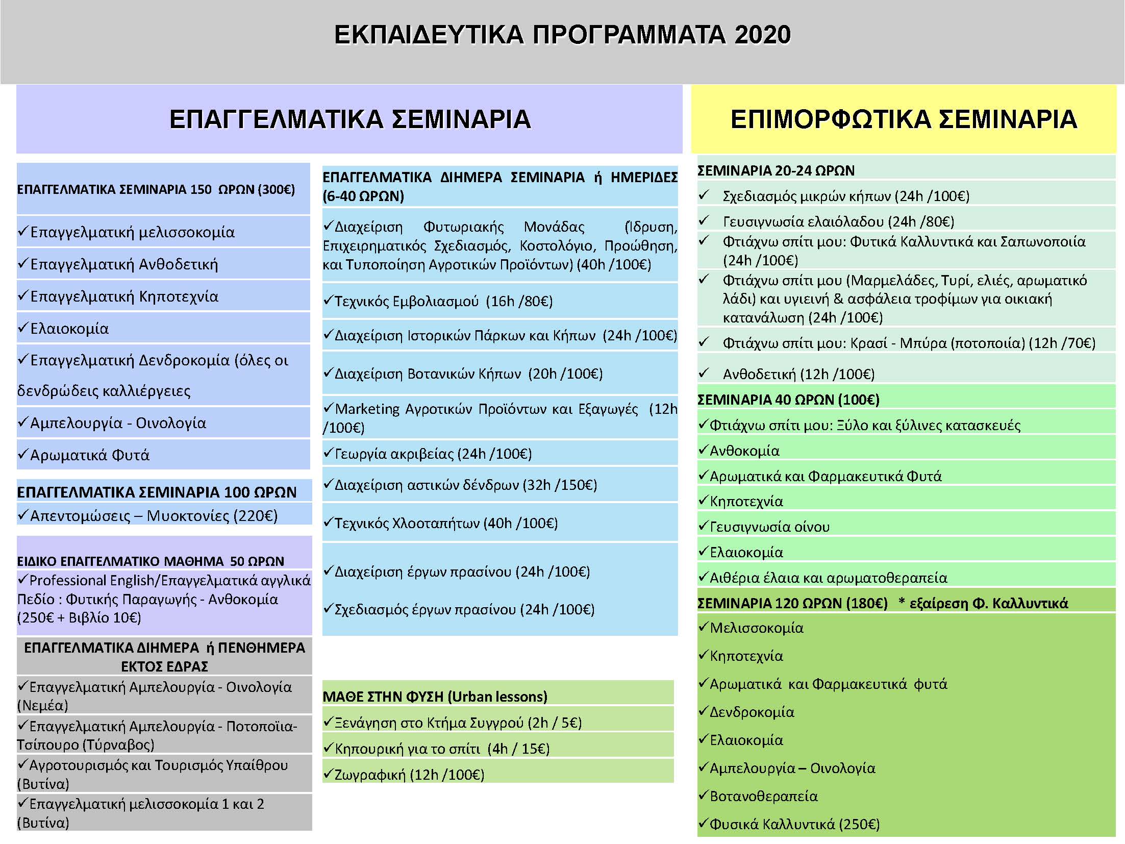 Το Ινστιτούτο Γεωπονικών Επιστημών σας ενημερώνει ότι τη Τετάρτη 5 Φεβρουαρίου 2020 ξεκινούν οι εγγραφές για τα καινούρια εκπαιδευτικά προγράμματα όπως αυτά αναφέρονται στα επισυναπτόμενα αρχεία