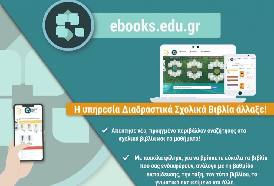 Η υπηρεσία “Διαδραστικά Σχολικά Βιβλία” άλλαξε, παρέχοντας νέα, εύχρηστα εργαλεία αναζήτησης σε μαθητές και εκπαιδευτικούς, που πλέον θα μπορούν να πλοηγούνται στον ιστότοπο και να εντοπίζουν ευκολότερα το αντικείμενο αναζήτησής τους, χρησιμοποιώντας λέξεις-κλειδιά και φίλτρα.