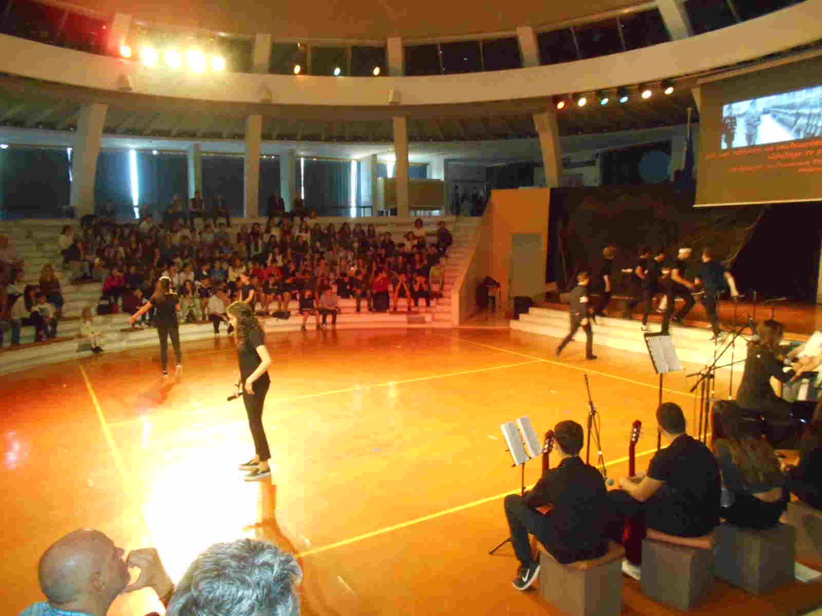 Τα παιδιά με την συνοδεία της χορωδίας μάγεψαν το κοινό και αναπαράστησαν τα γεγονότα από την αρχή που εισέβαλαν οι Γερμανοί έως το τέλος της μάχης.