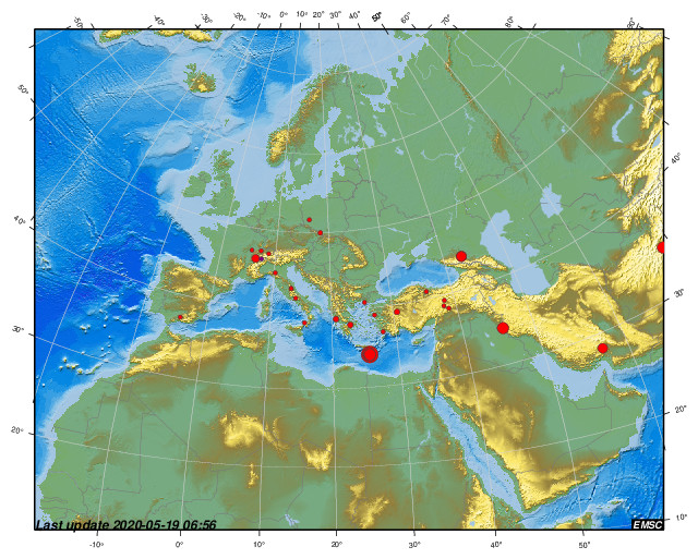 Σεισμική δόνηση μεγέθους 5.2 βαθμών της κλίμακας Ρίχτερ σημειώθηκε στις 02.22 σήμερα το πρωί Τρίτη 19-05-2020. Το επίκεντρο της δόνησης είναι 77 χλμ Νότια της Άρβης Ηρακλέιου Κρήτης. Το εστιακό βάθος μετρήθηκε στα 10 χλμ